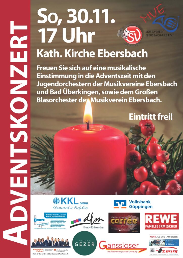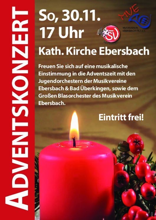 Freuen Sie sich auf eine musikalische Einstimmung in die Adventszeit mit den Jugendorchestern der Musikvereine Ebersbach & Bad Überkingen, sowie dem Großen Blasorchester des Musikverein Ebersbach.