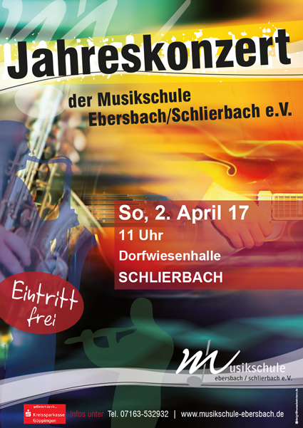 Jahreskonzert der Musikschule am 2.4.2017 in Schlierbach. Jugendblasorchester Musikverein Ebersbach spielt mit.